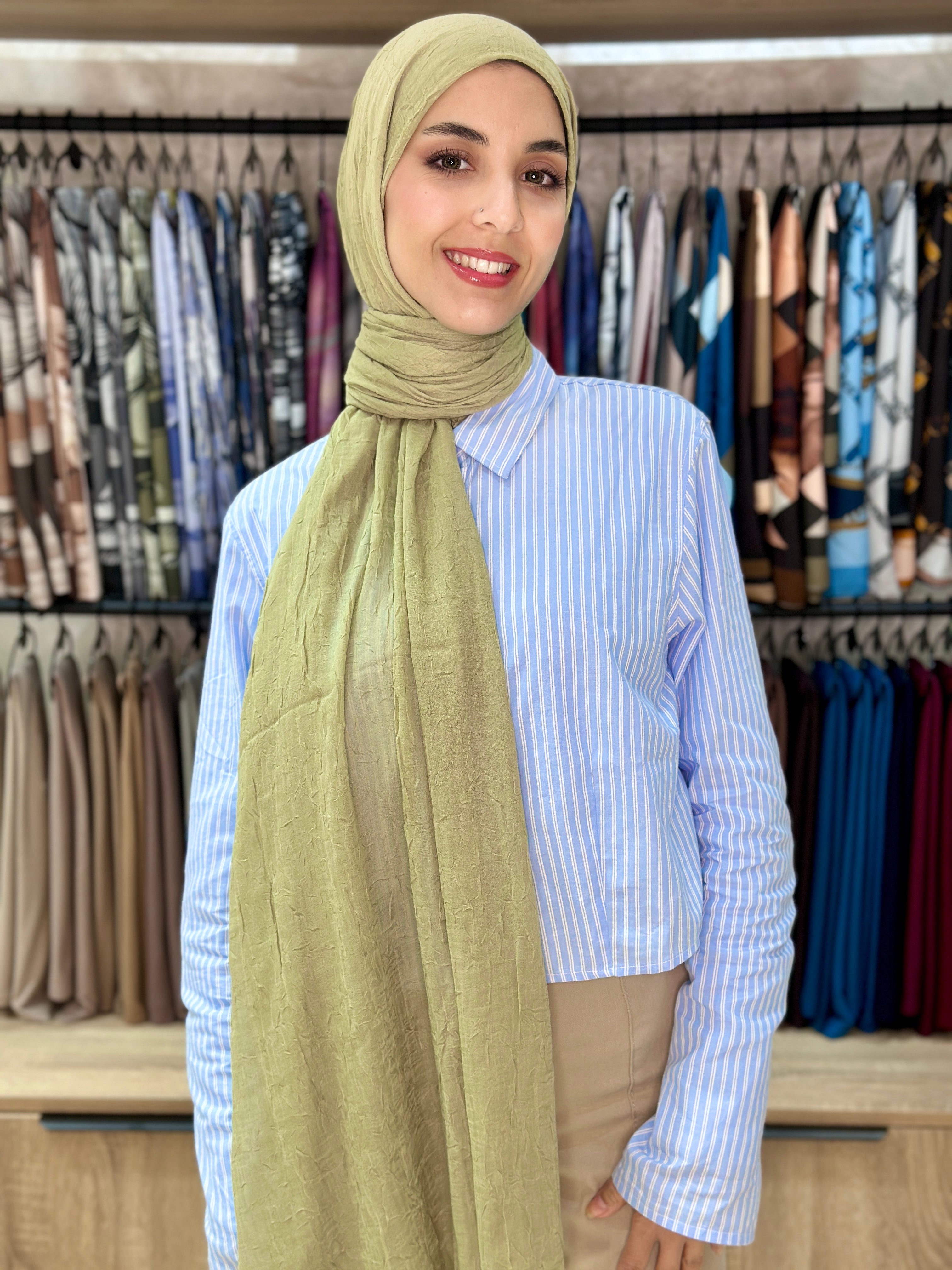 La collection de Hijabs Modachic en bambou allie confort naturel et élégance intemporelle. Grâce à sa matière froissée et hautement respirante, ce châle assure une sensation de fraîcheur en été tout en conservant la chaleur en hiver. Léger, doux et facile à porter, ce foulard s’adapte parfaitement à toutes les saisons et à tous les styles. Pensé pour un usage quotidien, il offre une praticité optimale sans compromis sur le style, idéal pour une allure chic et naturelle au Maroc.