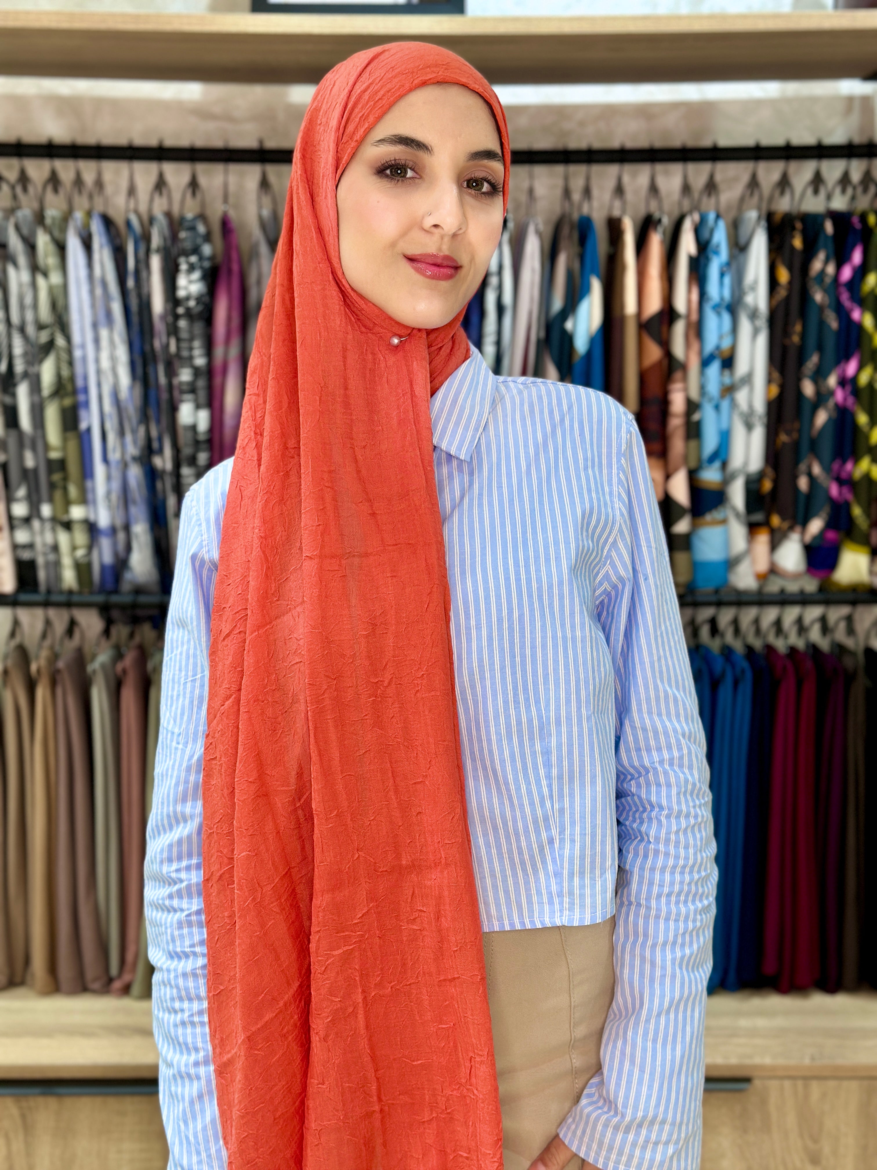 La collection de Hijabs Modachic en bambou allie confort naturel et élégance intemporelle. Grâce à sa matière froissée et hautement respirante, ce châle assure une sensation de fraîcheur en été tout en conservant la chaleur en hiver. Léger, doux et facile à porter, ce foulard s’adapte parfaitement à toutes les saisons et à tous les styles. Pensé pour un usage quotidien, il offre une praticité optimale sans compromis sur le style, idéal pour une allure chic et naturelle au Maroc.