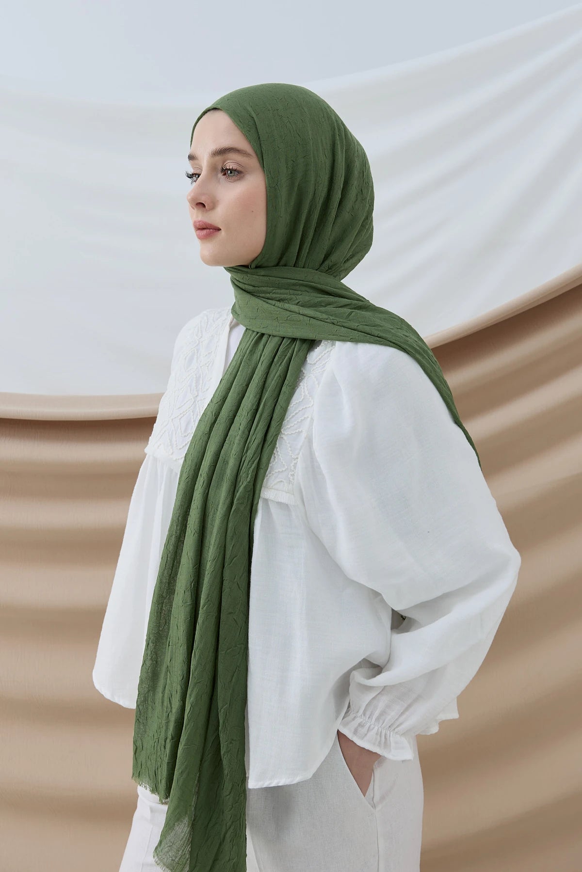 La collection de Hijabs Modachic en bambou allie confort naturel et élégance intemporelle. Grâce à sa matière froissée et hautement respirante, ce châle assure une sensation de fraîcheur en été tout en conservant la chaleur en hiver. Léger, doux et facile à porter, ce foulard s’adapte parfaitement à toutes les saisons et à tous les styles. Pensé pour un usage quotidien, il offre une praticité optimale sans compromis sur le style, idéal pour une allure chic et naturelle au Maroc.