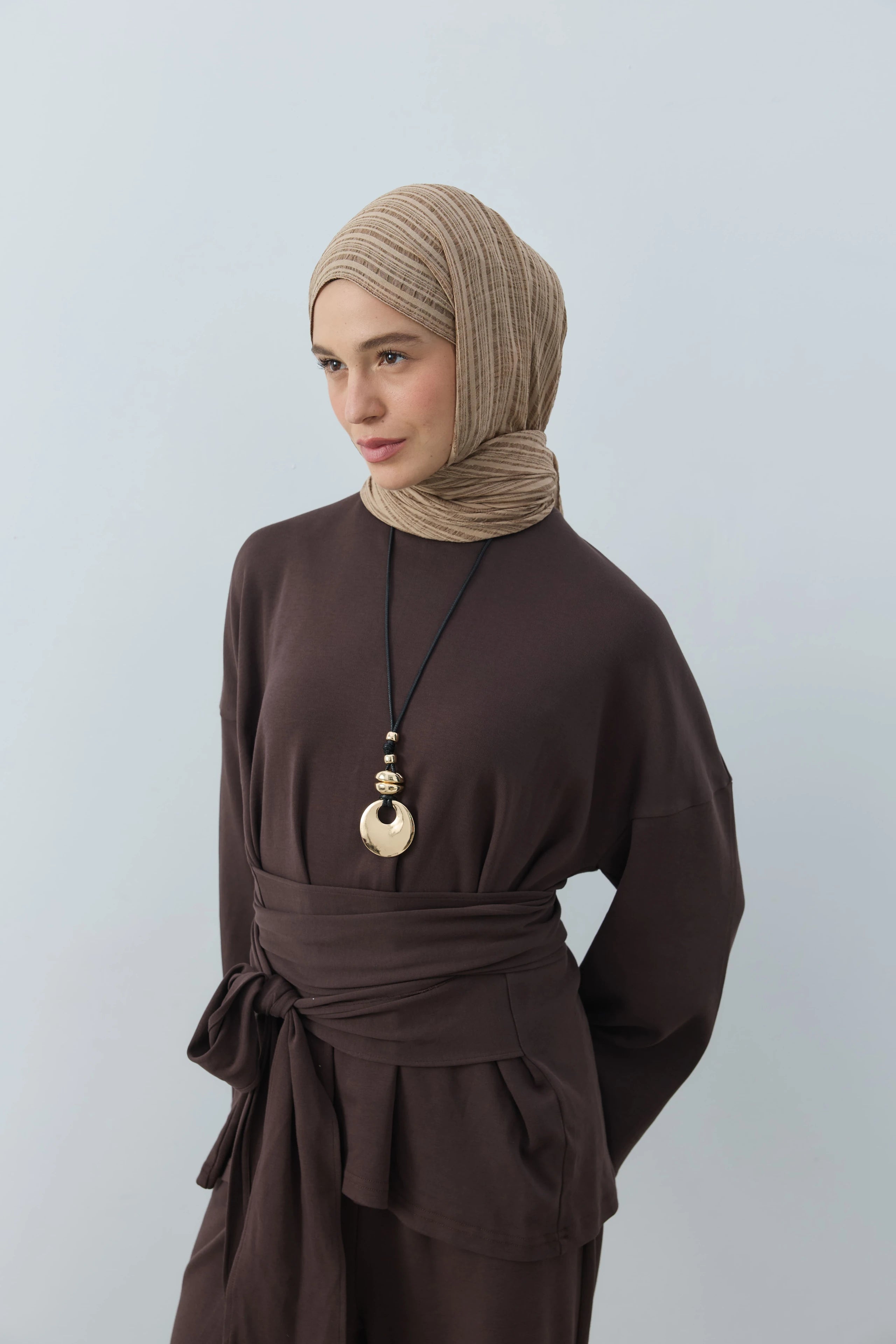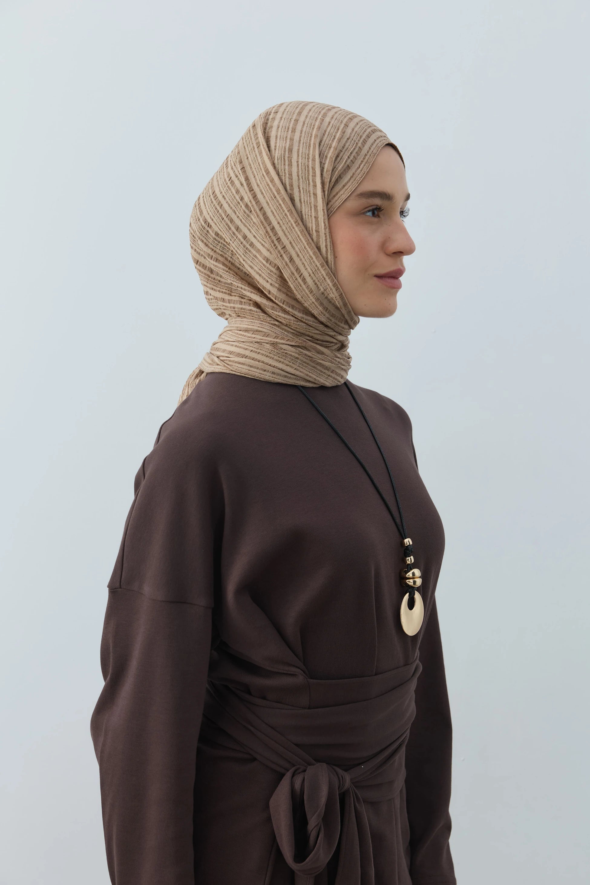 La collection Misto incarne une vision contemporaine du Hijab Modachic, avec un design dynamique et un subtil effet froissé maîtrisé. Léger, doux au toucher et totalement sans repassage, ce foulard a été conçu grâce à des études de texture précises afin d’offrir un rendu froissé parfaitement équilibré. Facile à coiffer et agréable à porter, ce châle conserve son volume et sa tenue tout au long de la journée. Adapté aux quatre saisons, il se distingue par son confort absolu et son style moderne, idéal pour un look chic et naturel au Maroc.