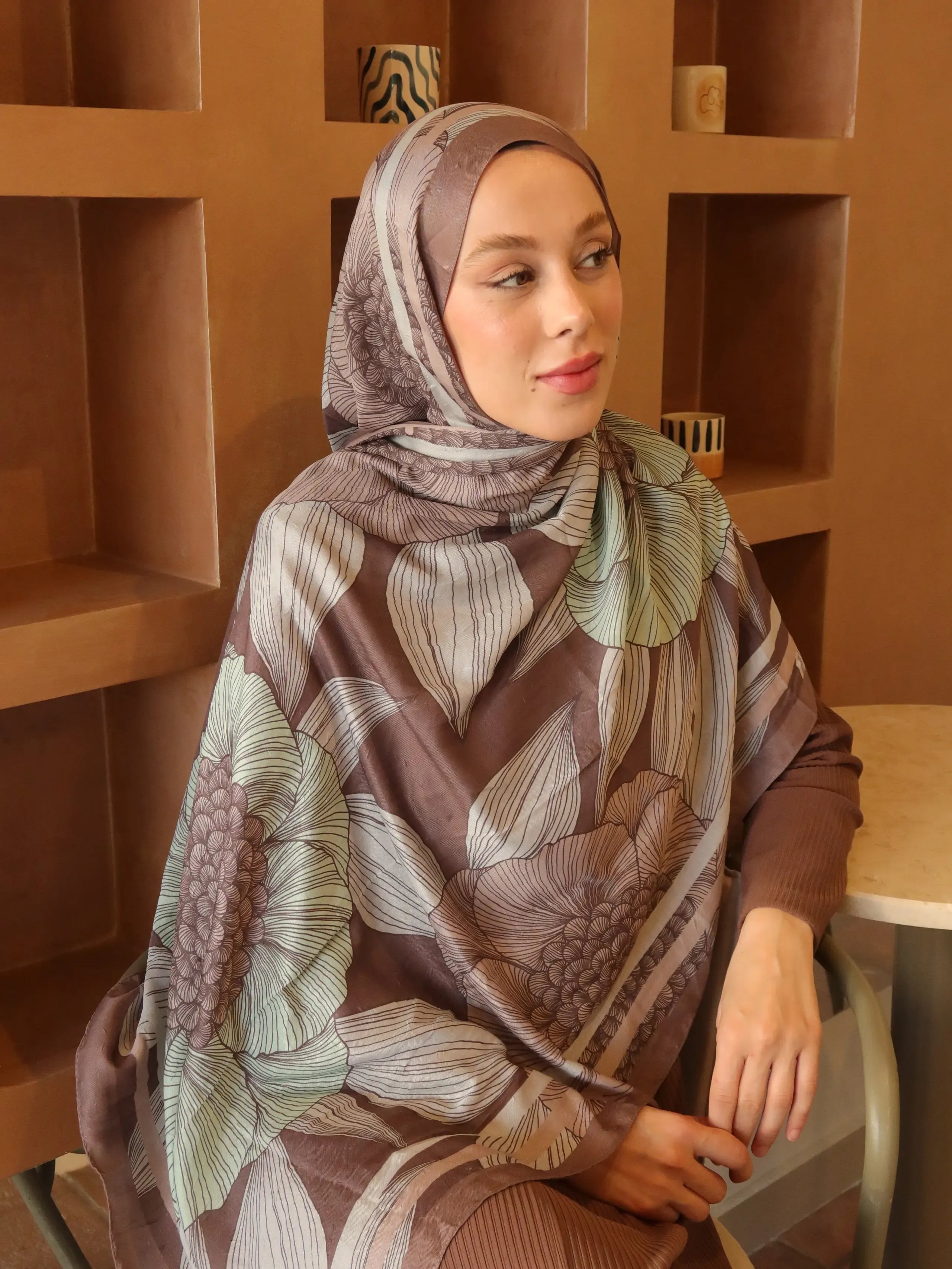 Châle motif Séraflore - Brun Poussiéreux