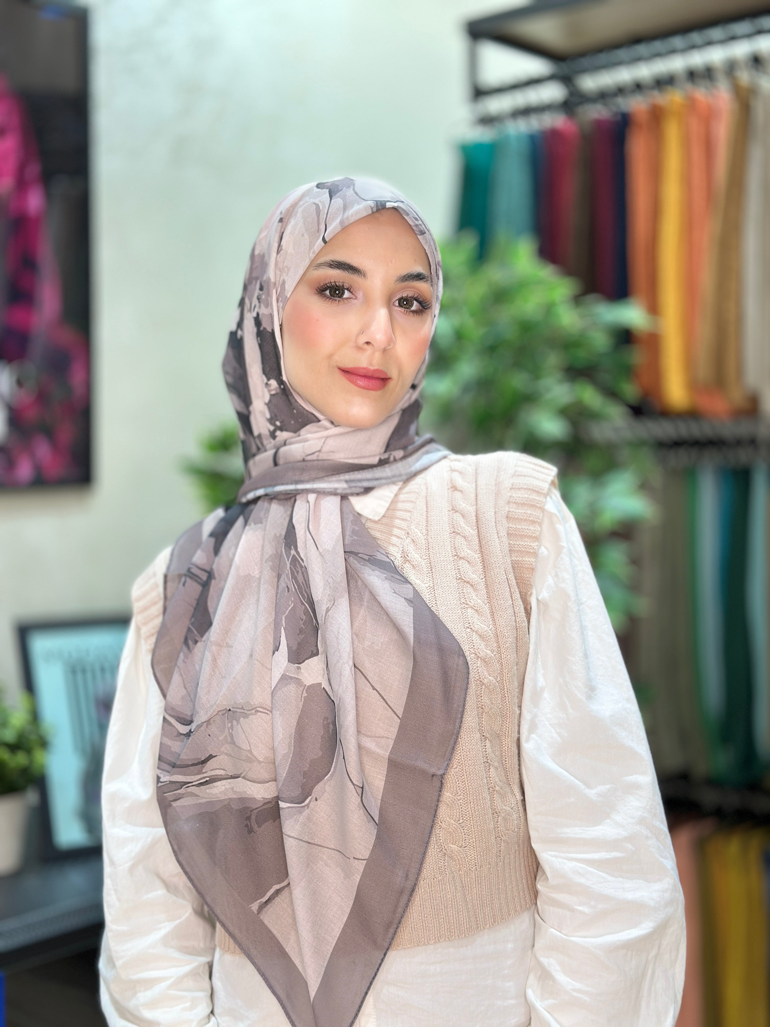 Apportez une touche artistique à votre tenue avec ce foulard carré Hijab Modachic au motif marbre abstrait. Inspiré des formes naturelles et des mouvements fluides, ce foulard se distingue par son design moderne et raffiné. Élégant et polyvalent, il peut être porté comme hijab, châle ou accessoire de style pour sublimer vos looks du quotidien comme ceux des occasions spéciales. Son motif abstrait apporte du caractère tout en conservant une allure chic et intemporelle, faisant de ce foulard Modachic un indispensable du dressing féminin au Maroc.