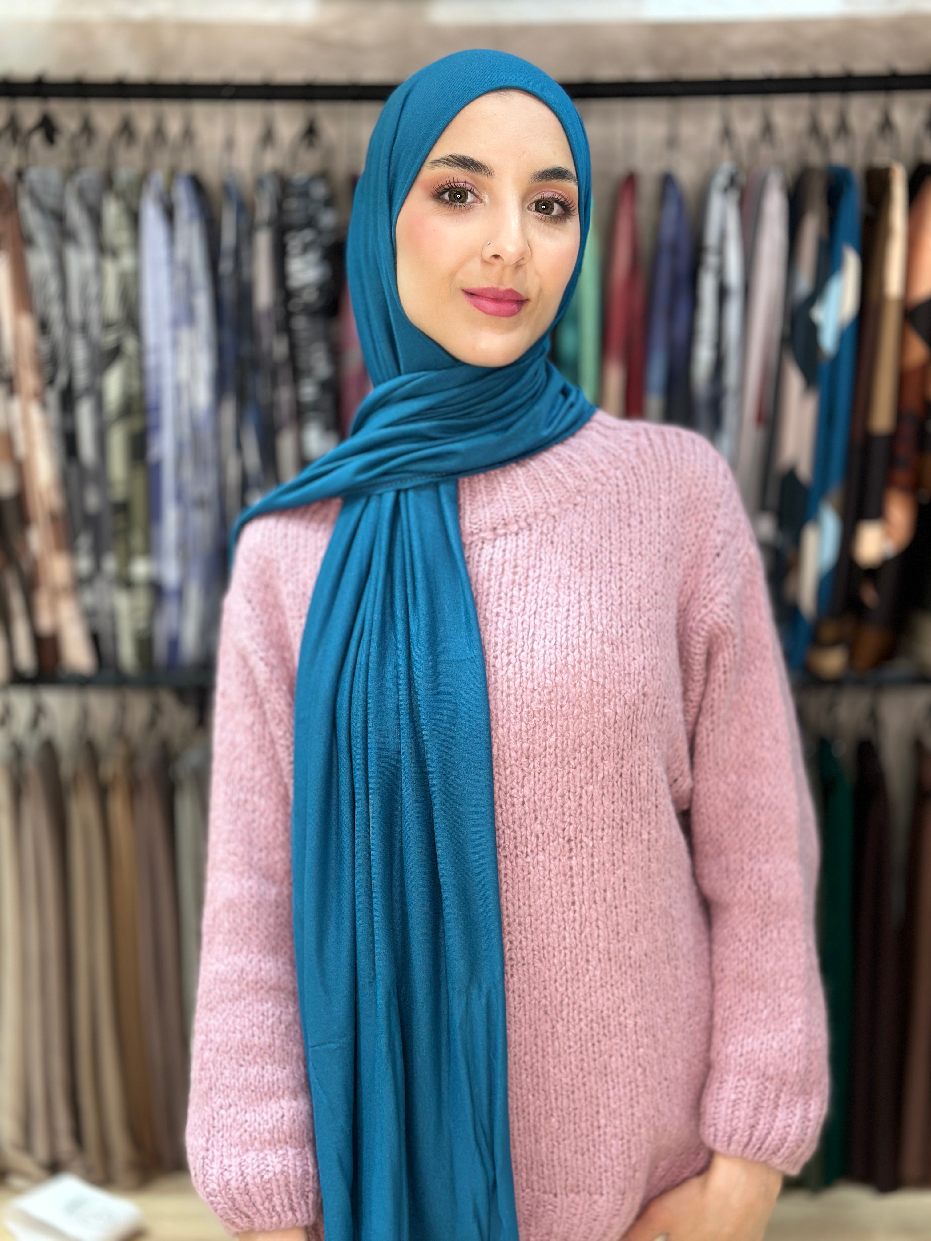 Apportez une touche de raffinement à votre style avec ce Hijab Modachic, conçu pour allier élégance, douceur et praticité. Réalisé dans un tissu léger en coton-viscose avec une touche de lycra, ce châle offre un confort exceptionnel et une tenue parfaite tout au long de la journée. Ses surpiqûres italiennes et sa coupe étudiée permettent un nouage facile, sans plis au niveau du cou. Polyvalent et intemporel, ce foulard est un indispensable du dressing féminin au Maroc, idéal pour toutes les occasions.