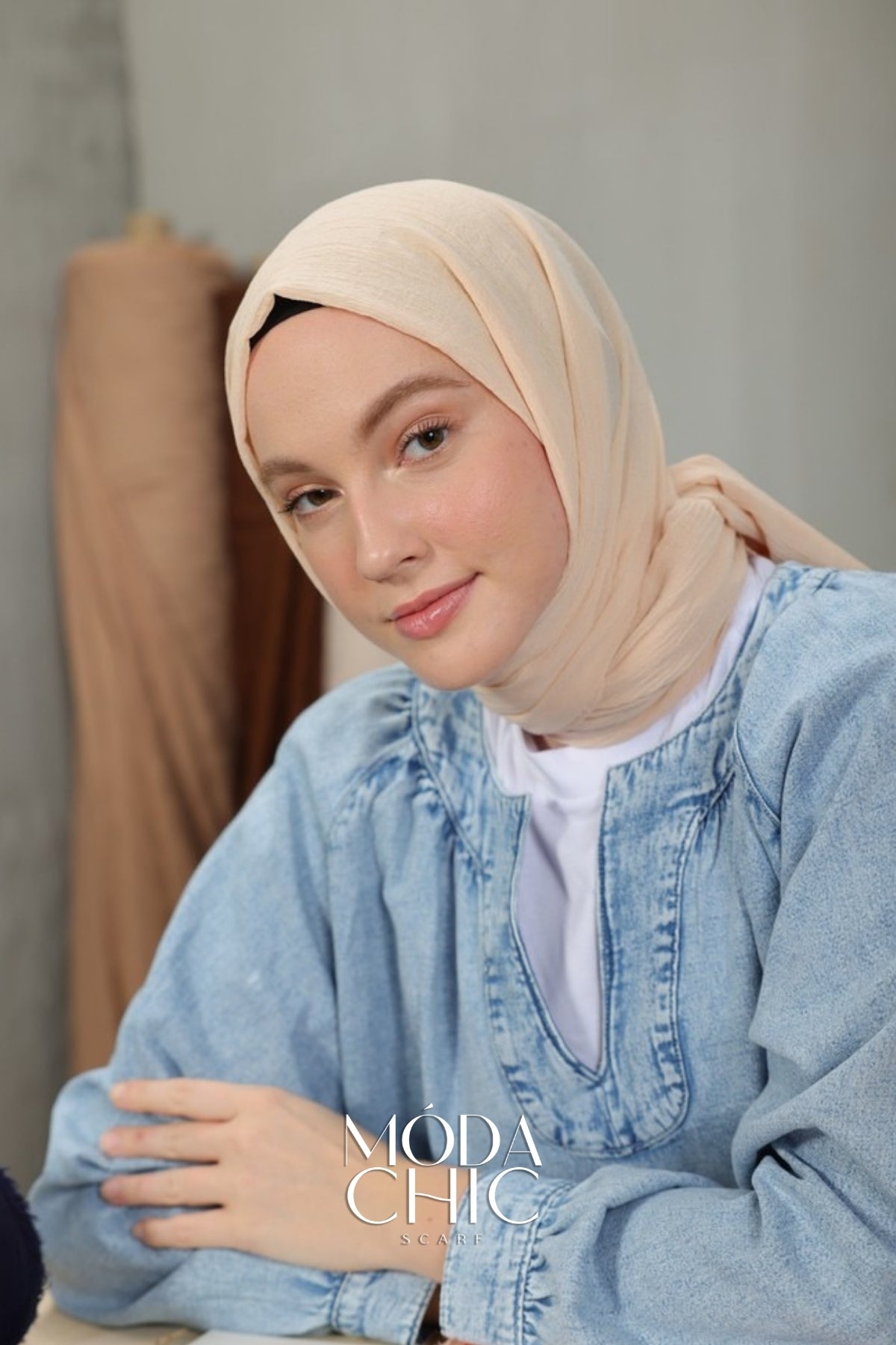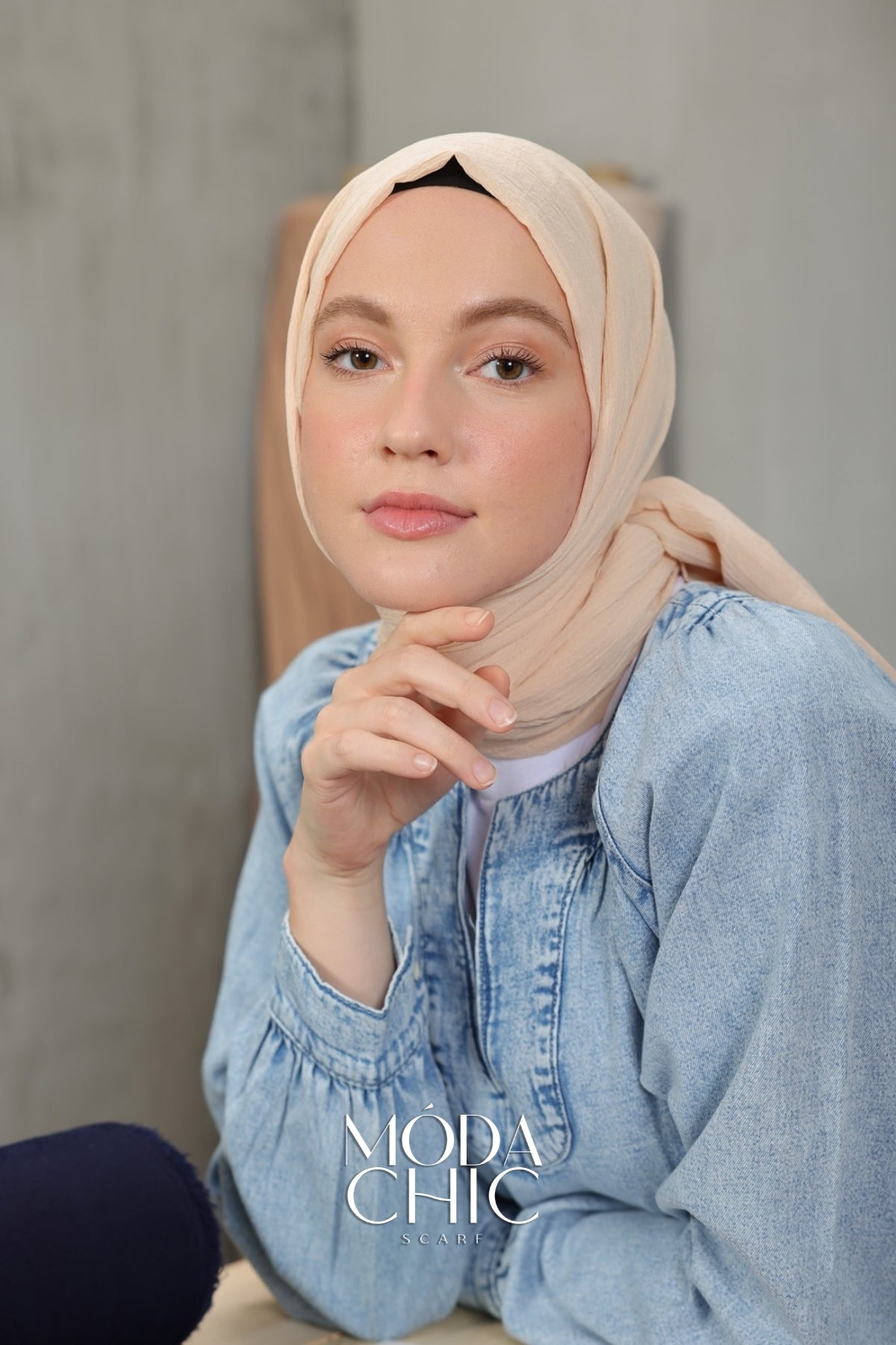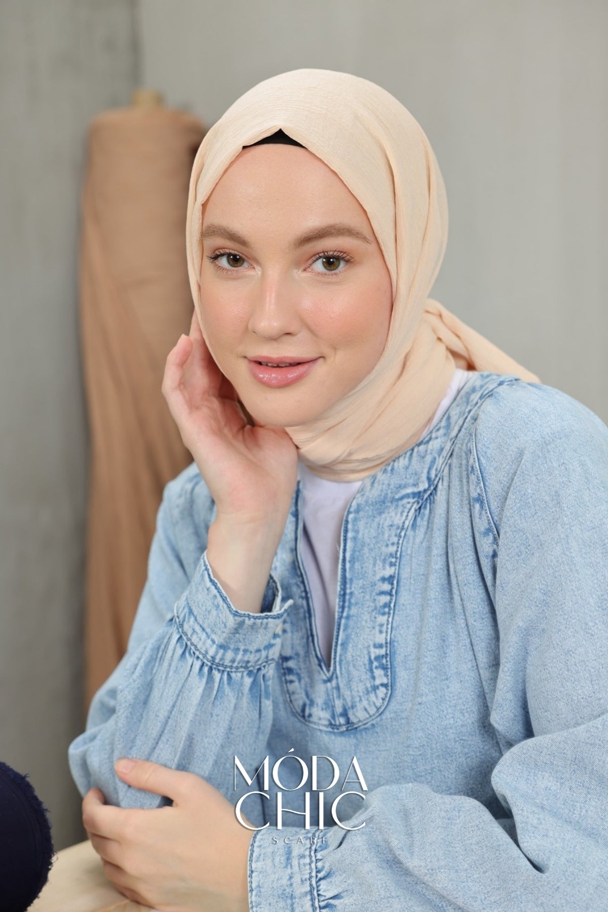 Grâce à la texture créée avec des techniques spéciales de la série Crinkle, elle a un aspect froissé. Sa structure souple lui permet de prendre la forme désirée. Vous pouvez l'utiliser à la fois pour des occasions spéciales et dans votre vie quotidienne. Ses bords sont cousus à l'italienne. Elle ne cause aucun problème de poids ou de glissement. Qu'elle soit utilisée en une seule couche ou en double couche, elle offre une utilisation confortable toute la journée sans plis. Elle ne transparaît pas et peut être utilisée toute l'année.