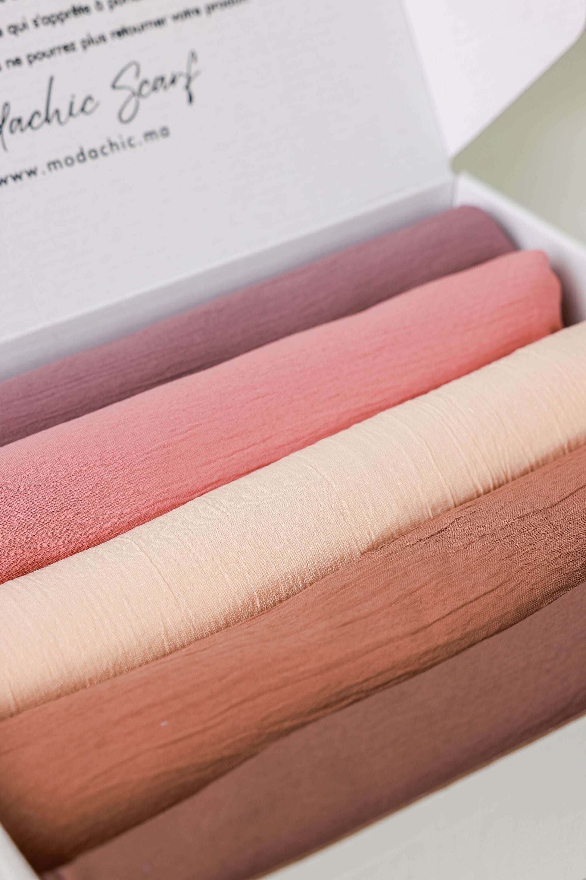 Grâce à la texture créée avec des techniques spéciales de la série Crinkle, elle a un aspect froissé. Sa structure souple lui permet de prendre la forme désirée. Vous pouvez l'utiliser à la fois pour des occasions spéciales et dans votre vie quotidienne. Ses bords sont cousus à l'italienne. Elle ne cause aucun problème de poids ou de glissement. Qu'elle soit utilisée en une seule couche ou en double couche, elle offre une utilisation confortable toute la journée sans plis. Elle ne transparaît pas et peut être utilisée toute l'année.
